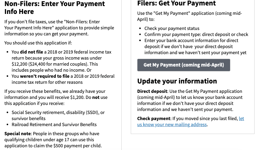 Now, there’s still hope: the IRS is putting together a portal where you can input your bank information for direct deposit. But, no surprise, it looks like the rush job it is: